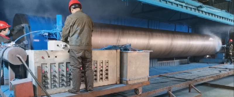 一般情況下管道外壁采用噴涂工藝,管道內(nèi)壁采用滾涂工藝。管道內(nèi)壁噴涂的常用工具是壓縮空氣噴槍,使用噴槍將噴涂于預(yù)熱后的管道內(nèi)外管壁。涂層厚度取決于噴槍的噴涂量、流水線速度,涂層厚度可以通過調(diào)整噴槍噴出量和流水線速度來調(diào)整。涂層厚度一般在150μm~500μm。