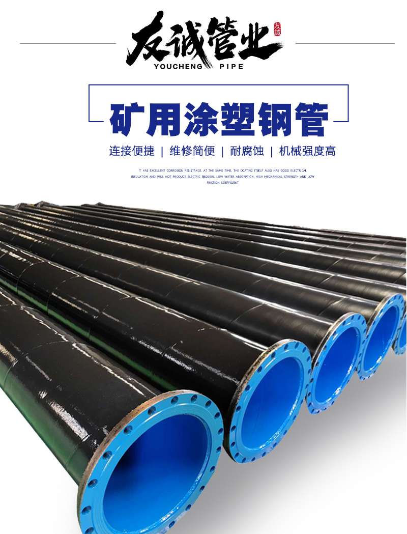 煤礦用涂塑復(fù)合鋼管的材質(zhì)均選用國標(biāo)產(chǎn)品,涂敷改良后的特制礦用聚乙烯粉末或環(huán)氧樹脂粉末。其工藝技術(shù)專門針對煤礦井下特殊的環(huán)境條件研發(fā),產(chǎn)品符合MT181-1988和CJ/T120-2008相關(guān)標(biāo)準(zhǔn),礦用鋼塑復(fù)合管具有抗靜電、耐腐蝕、使用壽命長、有效增強安全性等諸多優(yōu)點,是替代傳統(tǒng)管材的理想產(chǎn)品。